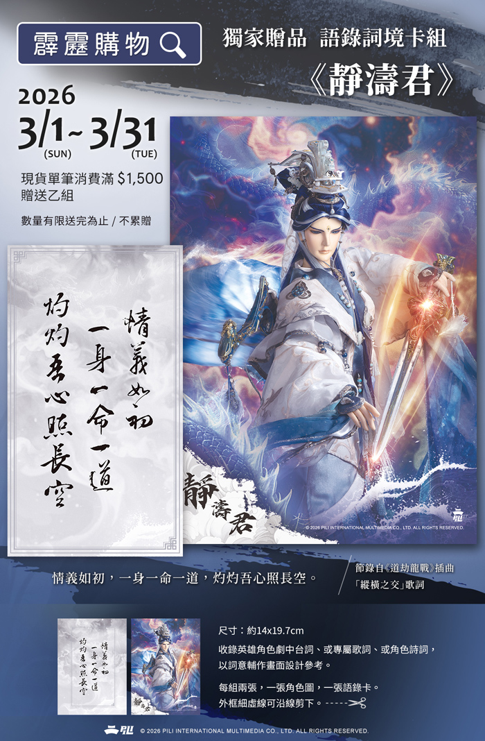 請隨時關注「霹靂粉好康」FB:https://www.facebook.com/Pilishops/
